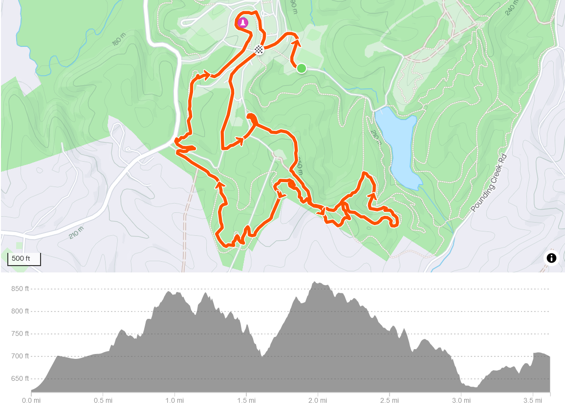 Miller School of Albemarle's course is a moderately technical 4-mile loop with a combination of gravel, grass, double track, and single track trails. It begins with a steep gravel road climb before going up a steep double track climb and then a challenging singletrack climb. Yes, lots of climbing to start out the race--this means plenty of time and places to pass.
